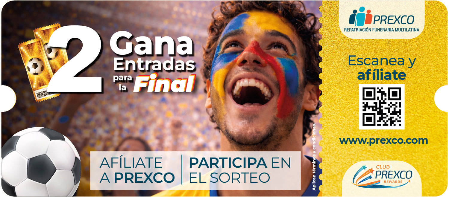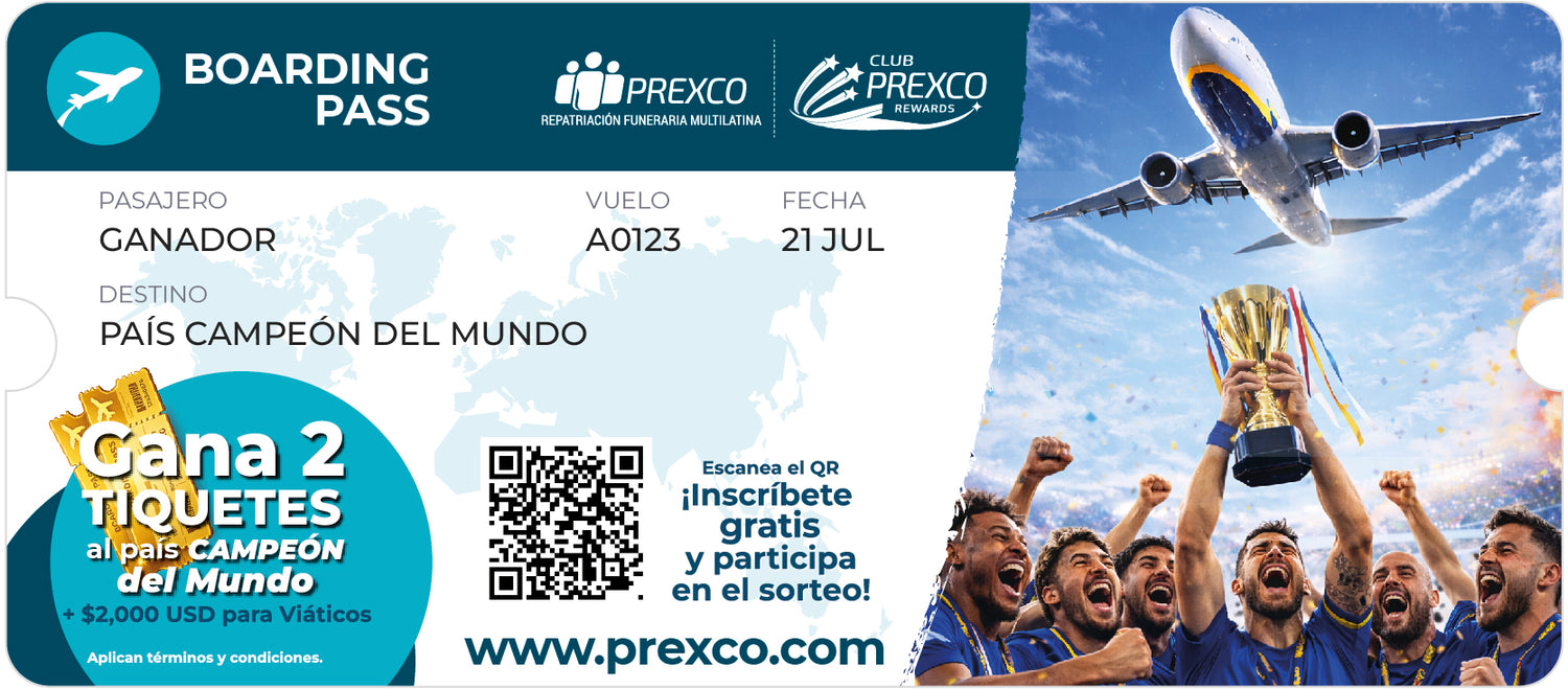 Las promociones mundialistas 2026 de PREXCO están sujetas a términos y condiciones, vigencia, cobertura geográfica, requisitos de participación y disponibilidad. Consulta las bases oficiales de cada promoción antes de participar.